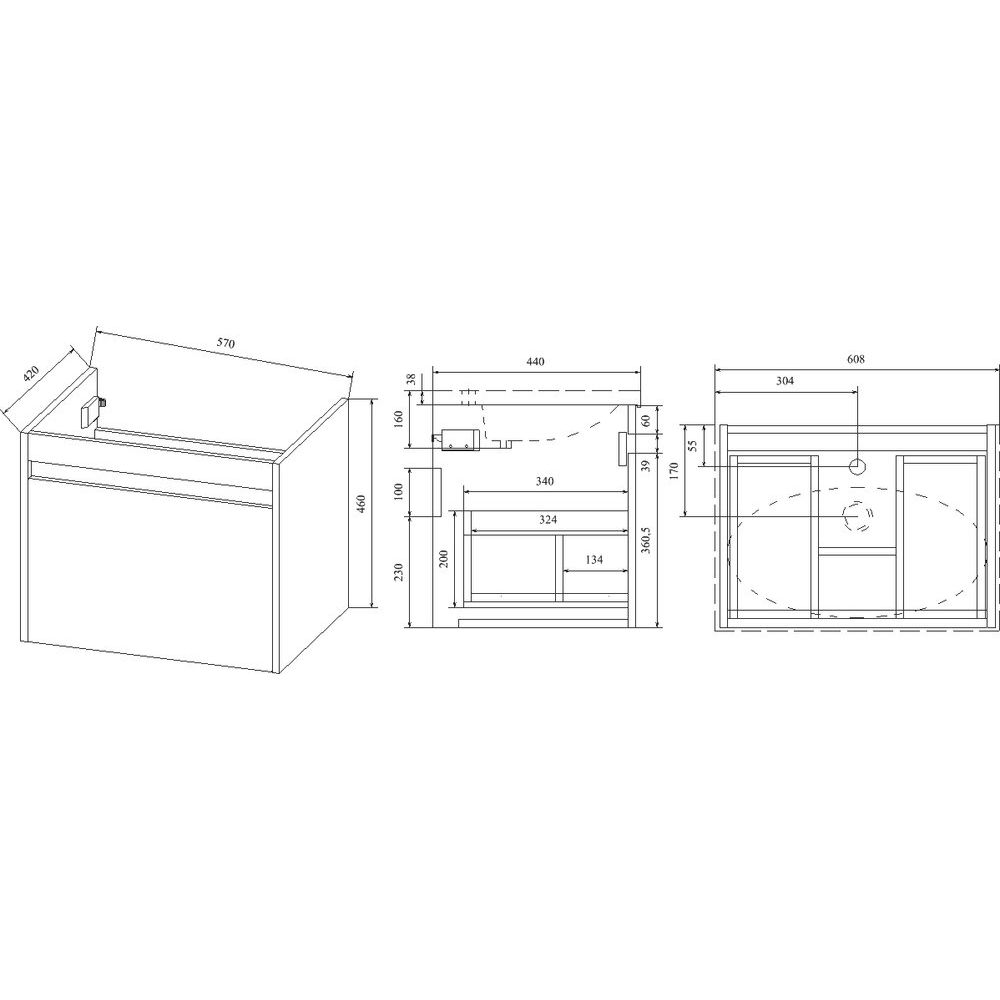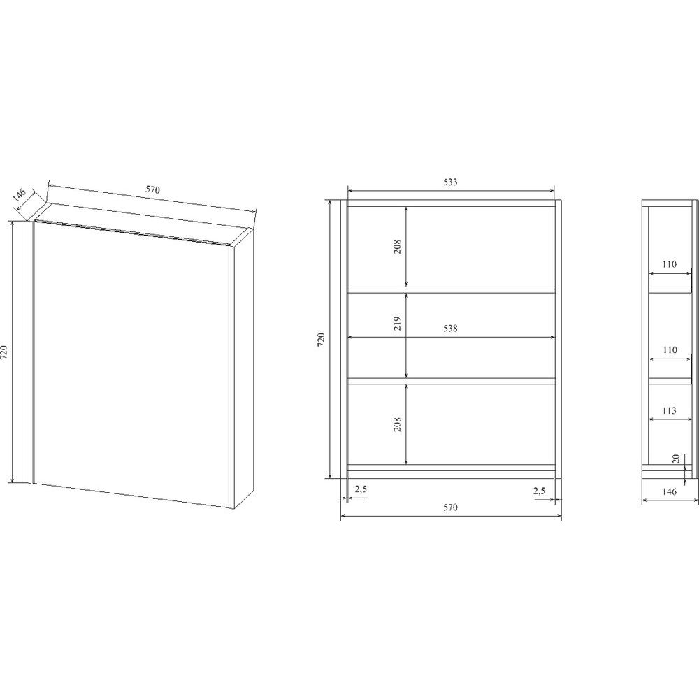 Тумба Sanflor Калипсо 60 выполнена из ЛДСП с эмалевым покрытием, что обеспечивает дополнительную стойкость к влаге и механическим повреждениям. Ее габариты составляют 57x42x46 см, а подвесная конструкция отлично экономит место. Раковина Cersanit Como 60 из фарфора, размером 60x45 см, имеет встроенный слив-перелив и подходящие отверстия для смесителя. Зеркало-шкаф, также подвесной, практично в использовании и оснащено механизмом доводчика. Размеры шкафа составляют 57x14,6x72 см.