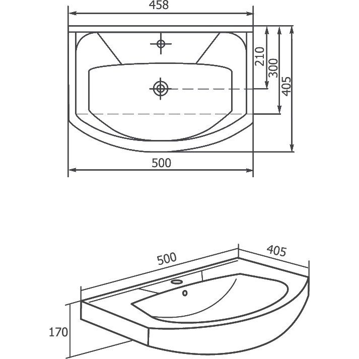 - Мебельная раковина Rosa Элеганс 50: размеры 50x40,5 см, материал — фаянс, входит в комплект слив-перелив, 1 отверстие под смеситель. Гарантия: 10 лет.
