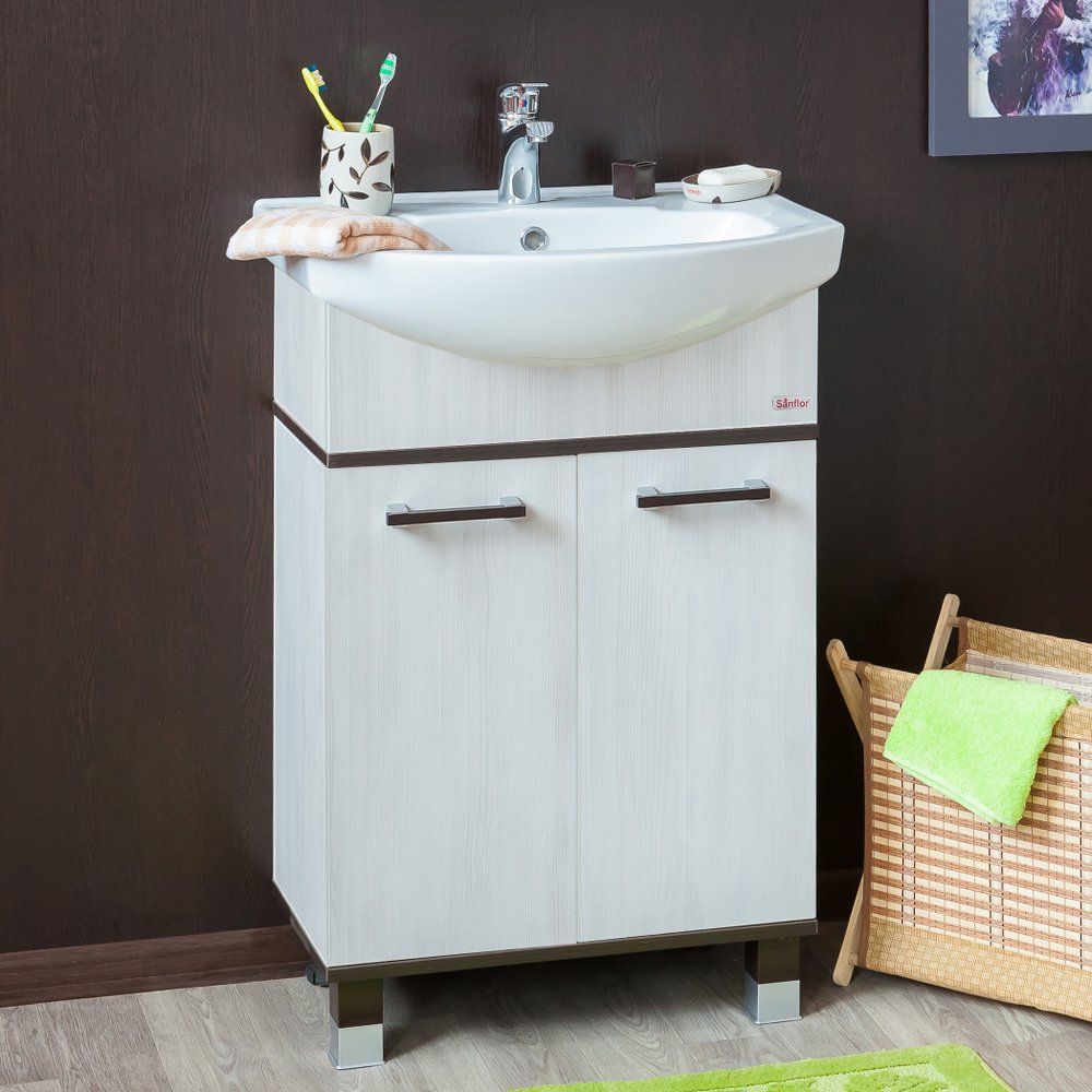 Комплект мебели для ванной Sanflor Толедо 60 — это стильное и функциональное решение для вашей ванной комнаты. Выполненный в современном дизайне, сочетающим текстуры венге и светлого северного дерева, этот гарнитур станет украшением любого интерьера. Вам понравится, насколько он удобен и практичен в повседневном использовании.