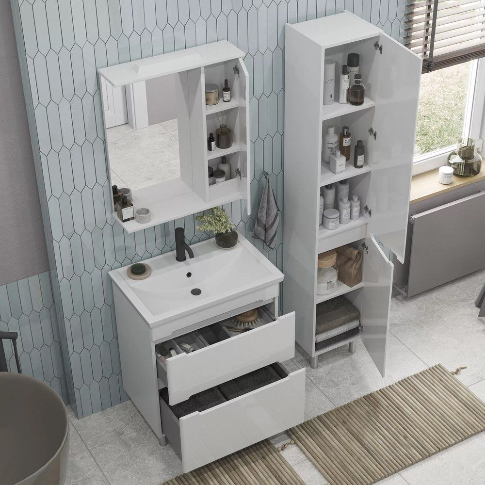 Представляем вам мебельный гарнитур для ванной комнаты SanStar Адель 70. Эта изысканная и функциональная напольная мебель станет отличным решением для создания уюта и комфорта в вашей ванной комнате. Гарнитур включает в себя всё необходимое для удобства вашего ежедневного ухода: просторную тумбу, изящную мебельную раковину и современное зеркало с подсветкой и розеткой. Всё это выполнено в современном дизайне и гарантирует высокое качество.