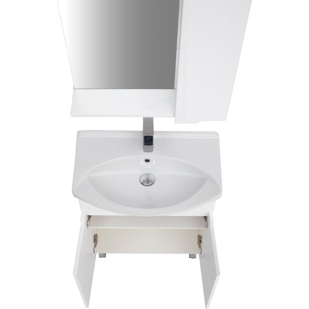 Тумба для комплекта SanStar Bianca 75: изготовлена из ЛДСП с эмалевым покрытием, оснащена несъёмными полками и механизмом доводчика для плавного закрывания. Габариты: 71,8x33,3x80 см. Покрытие фасада выполнено из эмалированного МДФ, а качество подтверждается 3-летней гарантией. Производство — Россия.