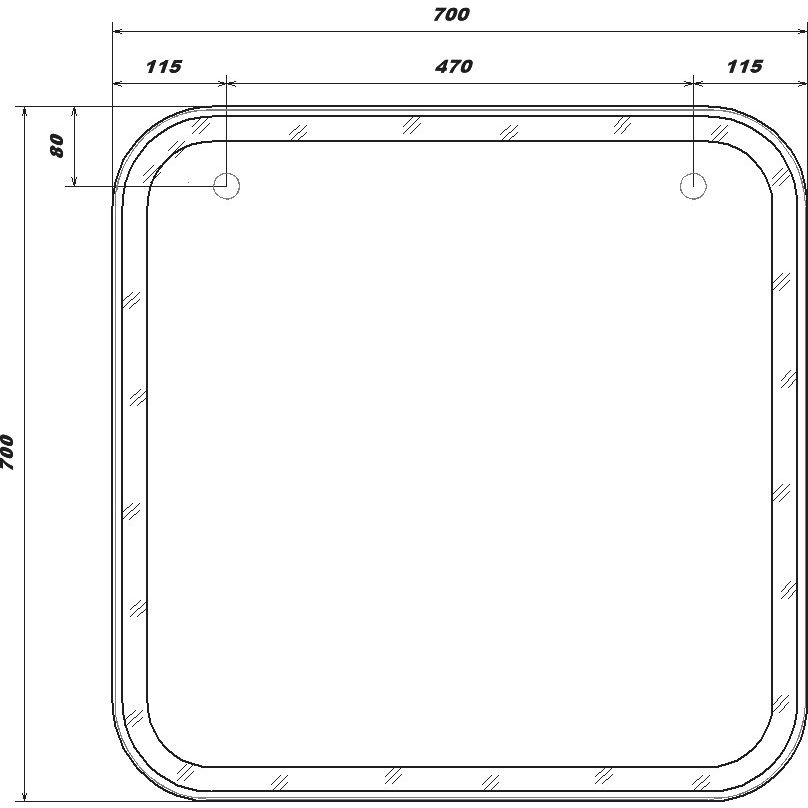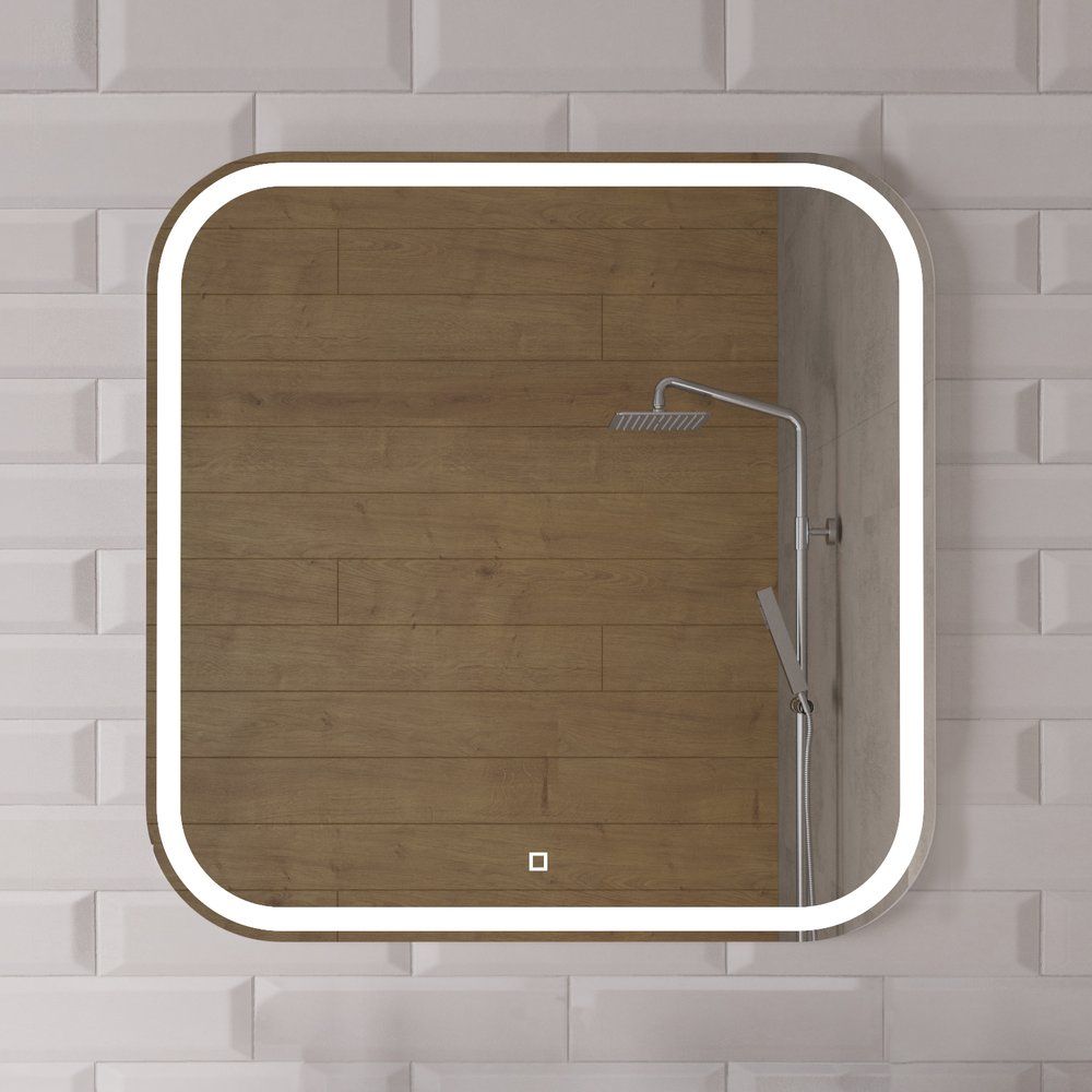 Зеркало SanStar Varna с размерами 70x2,6x70 см и подсветкой, выполнено из пластика, управляется сенсорным выключателем и обязательно пристеночным креплением.