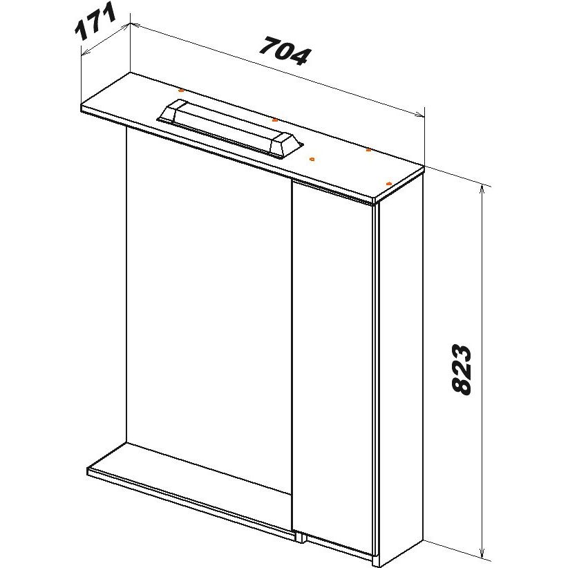 Зеркало SanStar Квадро 70 размером 70,4 x 17,1 x 72,3 см - это стильный и функциональный элемент комплекта. Оно подвесное и снабжено электровыключателем с механической кнопкой, розеткой и доводчиком для плавного закрывания. Гарантия на зеркало предоставляется на 3 года.