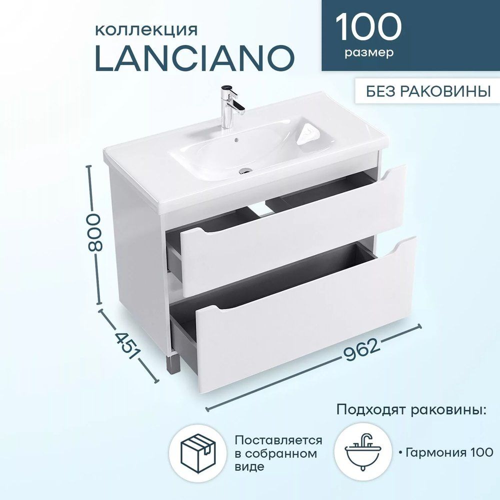 Перед приобретением гарнитура SanStar Lanciano 100 убедитесь в наличии различных комплектующих, таких как шкаф-пенал, который приобретается отдельно. Учтите, что при выборе сифона важно учитывать особенности конструкции тумбы с раковиной, подбирая сифоны исходя из конкретных параметров.