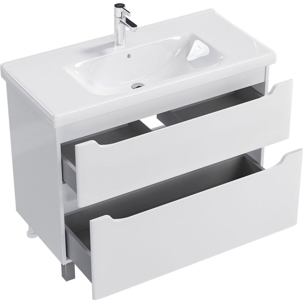 Напольная тумба SanStar Lanciano 100 сочетает в себе стиль и функциональность. Ее размеры — 96,2x45,1x80 см — делают её подходящей для стандартных ванных комнат. Тумба крепится к стене и опирается на хромированные ножки, обеспечивая надежную установку. Механизм доводчика позволяет ящикам закрываться плавно и бесшумно, а корпус из ЛДСП с эмалевым покрытием придает изделию долговечность и устойчивость к влаге.