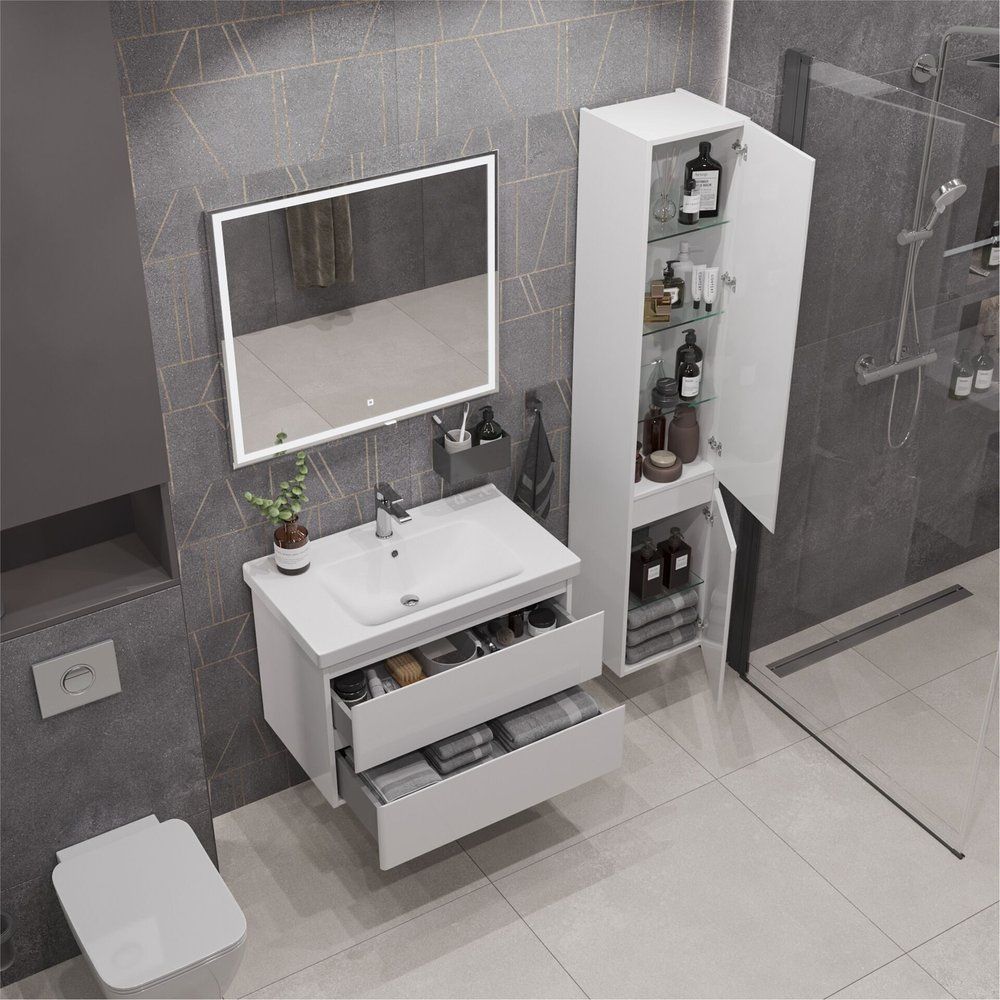 Представляем вашему вниманию подвесной гарнитур для ванной комнаты SanStar Migliore Arista 80. Это изящное и функциональное решение для создания современного интерьера вашей ванной комнаты. Гарнитур включает в себя стильную тумбу, практичную мебельную раковину и зеркальный элемент с подсветкой. Все составляющие предлагают удобство и долговечность благодаря высококачественным материалам и продуманному дизайну.