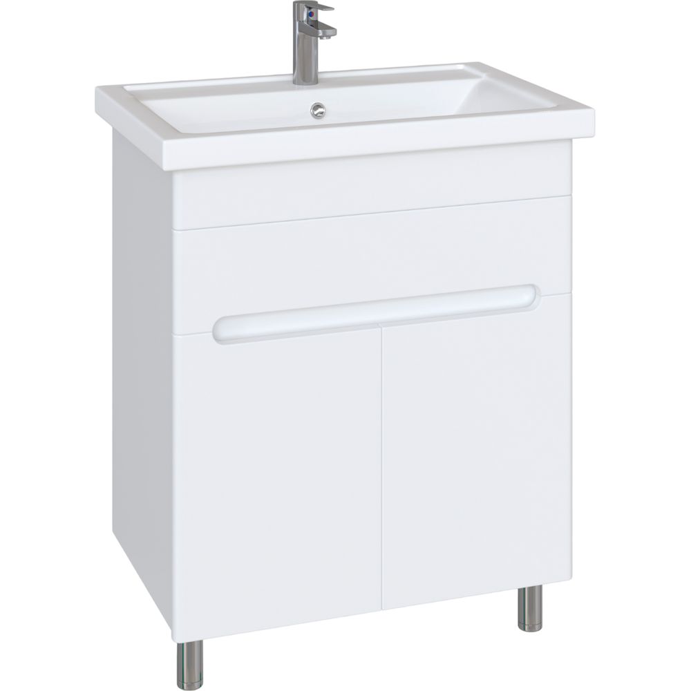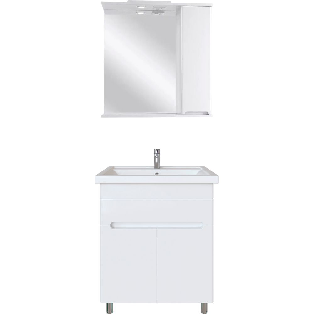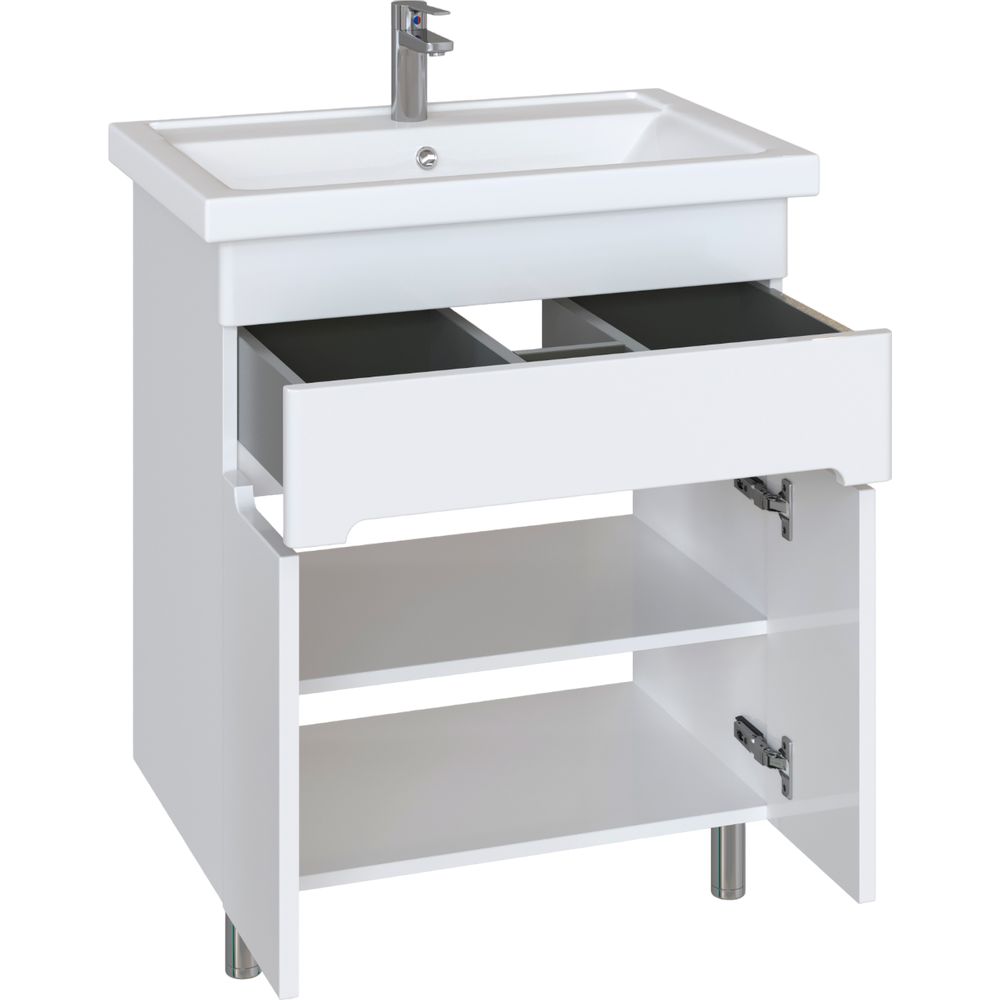 Гарнитур включает напольную тумбу SanStar Модена 70, выполненную из ЛДСП с ламинатным покрытием, размером 66,4x43,9x81 см, а также мебельную раковину Kirovit Фостер 70 из фаянса с габаритами 71x46,5 см. Раковина оснащена встроенным сливом-переливом и одним отверстием под смеситель. В комплекте также зеркало SanStar Адель 70 с корпусом из ЛДСП, обладающее электровыключателем и розеткой. Все изделия выполнены в стильном белом цвете с хромированной фурнитурой, что придает элегантность и лёгкость интерьерам. Опорные ножки у тумбы обеспечивают стабильность, а гарантия на раковину составляет 10 лет, на другие элементы - 3 года.