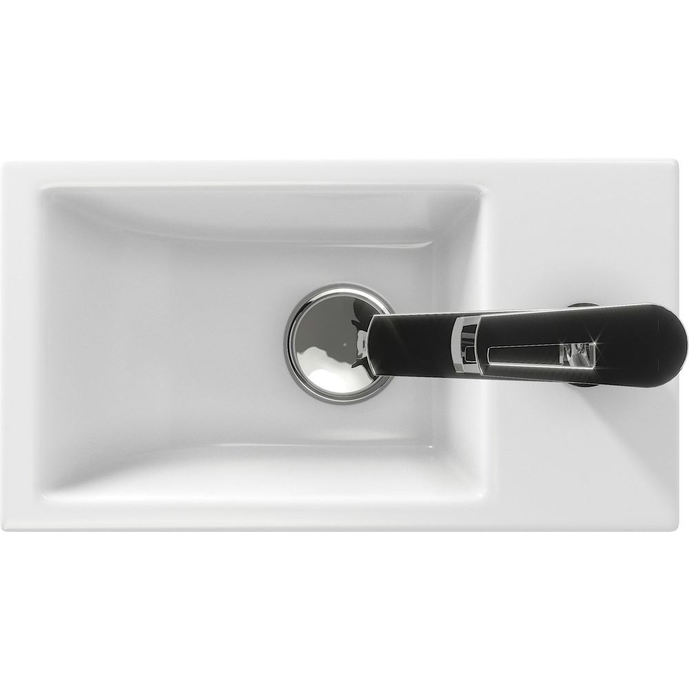 - Раковина имеет оборачиваемую конструкцию, что позволяет устанавливать смеситель слева или справа по вашему выбору.