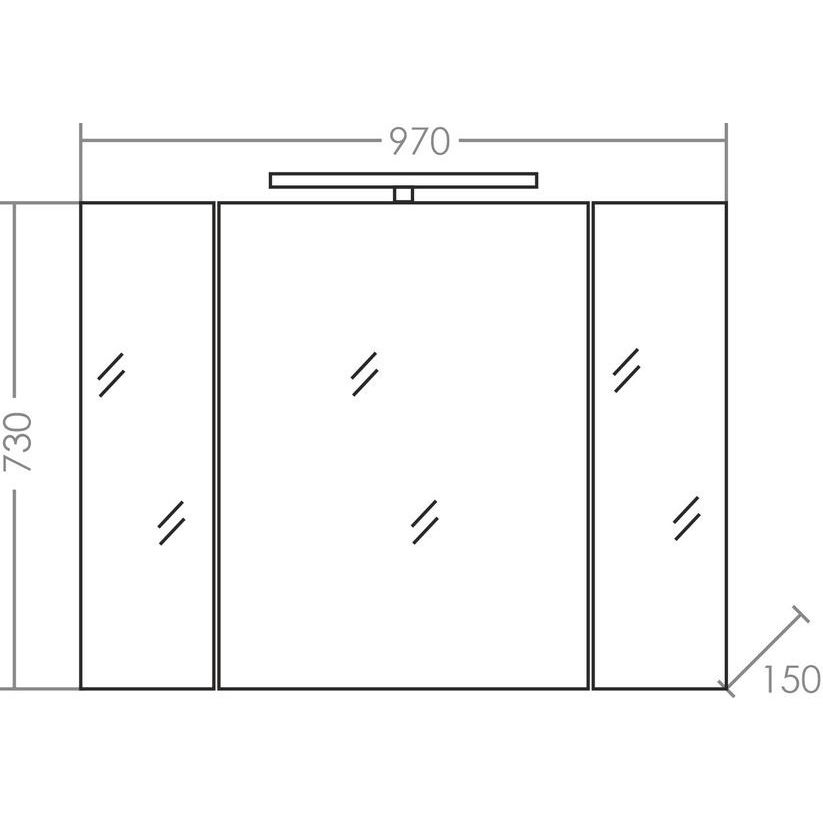 Зеркало-шкаф СаНта Стандарт 100 с габаритами 97x15x73 см, изготовлено из ДСП с ламинатным покрытием. Шкаф оснащен электровыключателем и доводчиком для плавного закрывания дверец. Зеркало снабжено фацетом, подсветкой и навесными креплениями.
