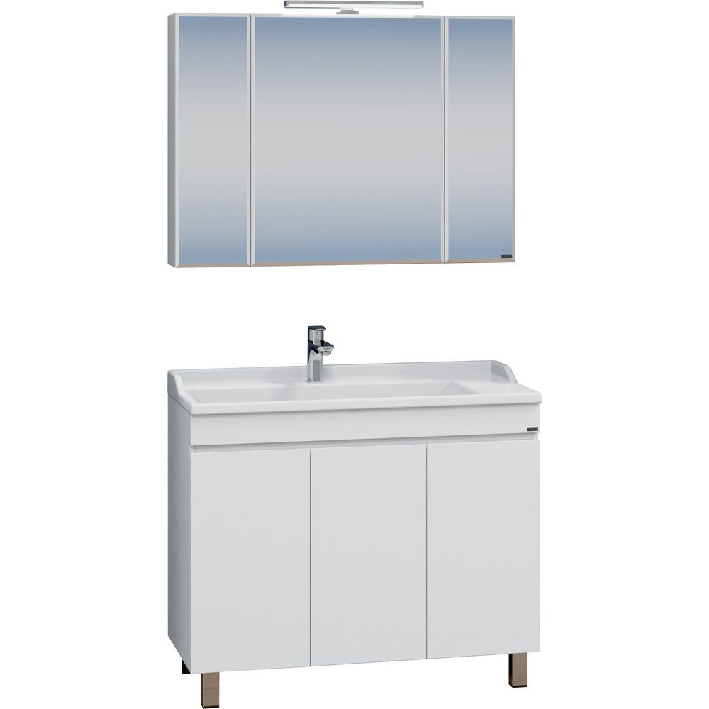 Тумба для комплекта СаНта Марс 100 напольная, имеет три дверцы и габариты 98,2x44,5x80 см. Изготовлена из ДСП, с эмалевым покрытием. Внутри предусмотрены несъемные полки. Механизм доводчика добавляет удобства в ежедневном использовании.