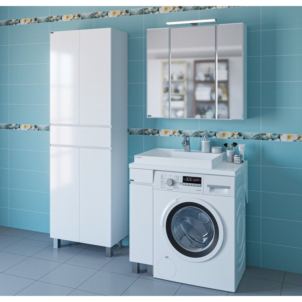 Оформите вашу ванную комнату стильной и практичной мебелью из коллекции "Марс" от бренда СаНта! Готовый гарнитур "СаНта Марс 19 L" гармонично сочетает в себе современный дизайн и высокую функциональность. Напольная тумба идеально подходит для установки над стиральной машиной, обеспечивая удобство и экономию места без потери комфорта. Белоснежный фасад из МДФ и корпус из ДСП с эмалевым покрытием придают изысканность, а также облегчают уход за поверхностями.