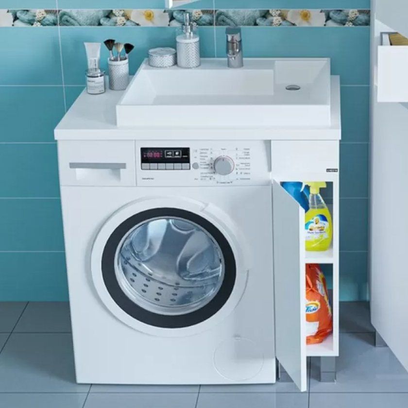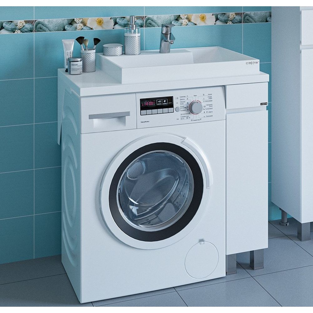 - Тумба СаНта Марс 19: размеры 19x49x87 см, напольная, из ДСП с эмалевым покрытием, фасад из МДФ с эмалью, оснащена дверкой, которая устанавливается над стиральной машиной.