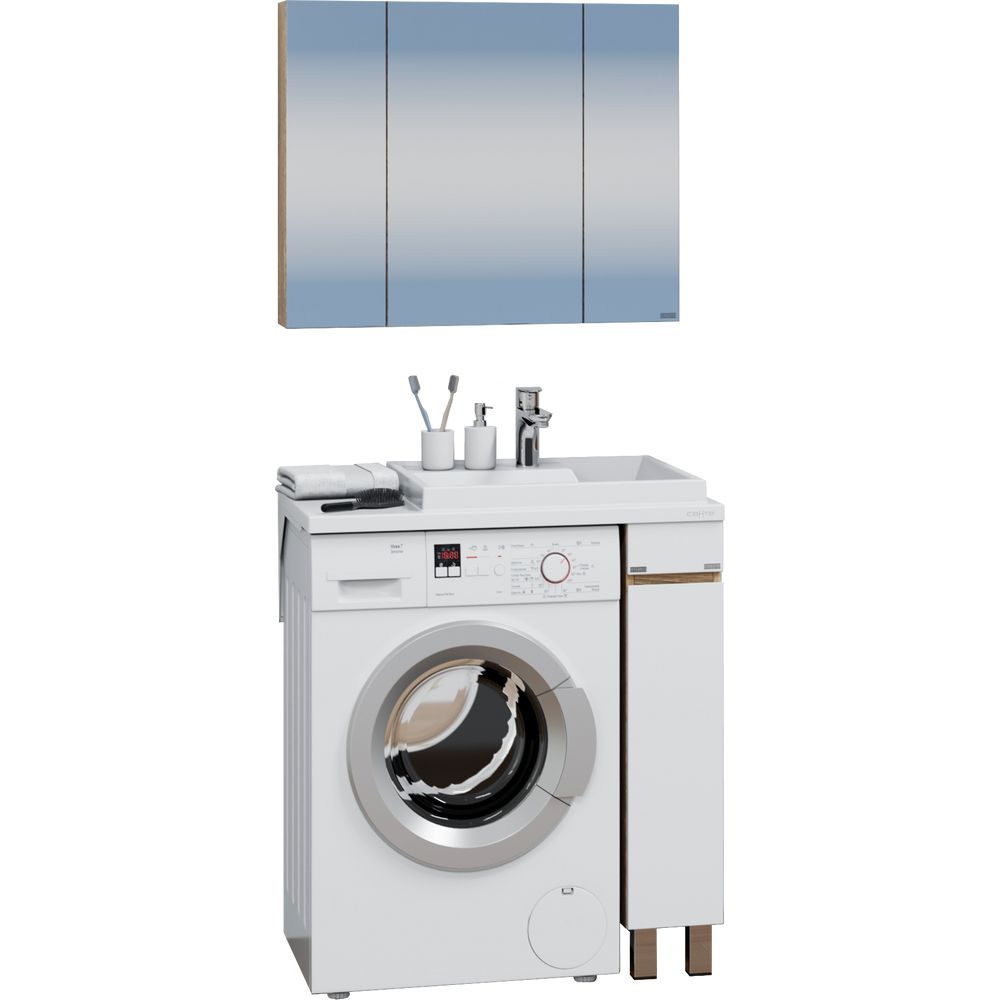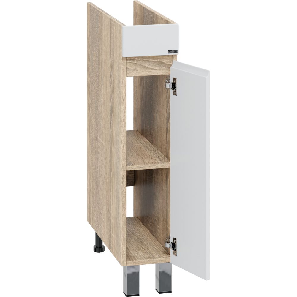Тумба для комплекта "СаНта Марс 19" с габаритами 19x49x77 см предназначена для размещения над стиральной машиной. Корпус выполнен из прочного ЛДСП с ламинированным покрытием, фасад изготовлен из МДФ и покрыт эмалью. Дверка с внутренними полками, которые нельзя менять местами, поддерживается опорными ножками, которые обеспечивают устойчивость. Гарантийный срок — 1 год. Производство Россия.