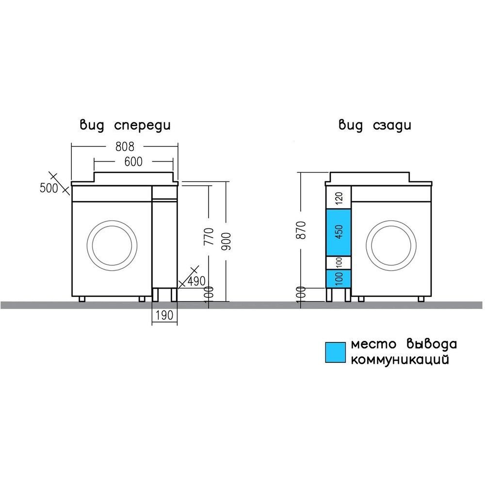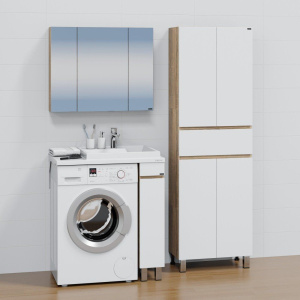 - Возможность установки тумбы под стиральную машину, что экономит пространство и оптимизирует использование ванной комнаты.