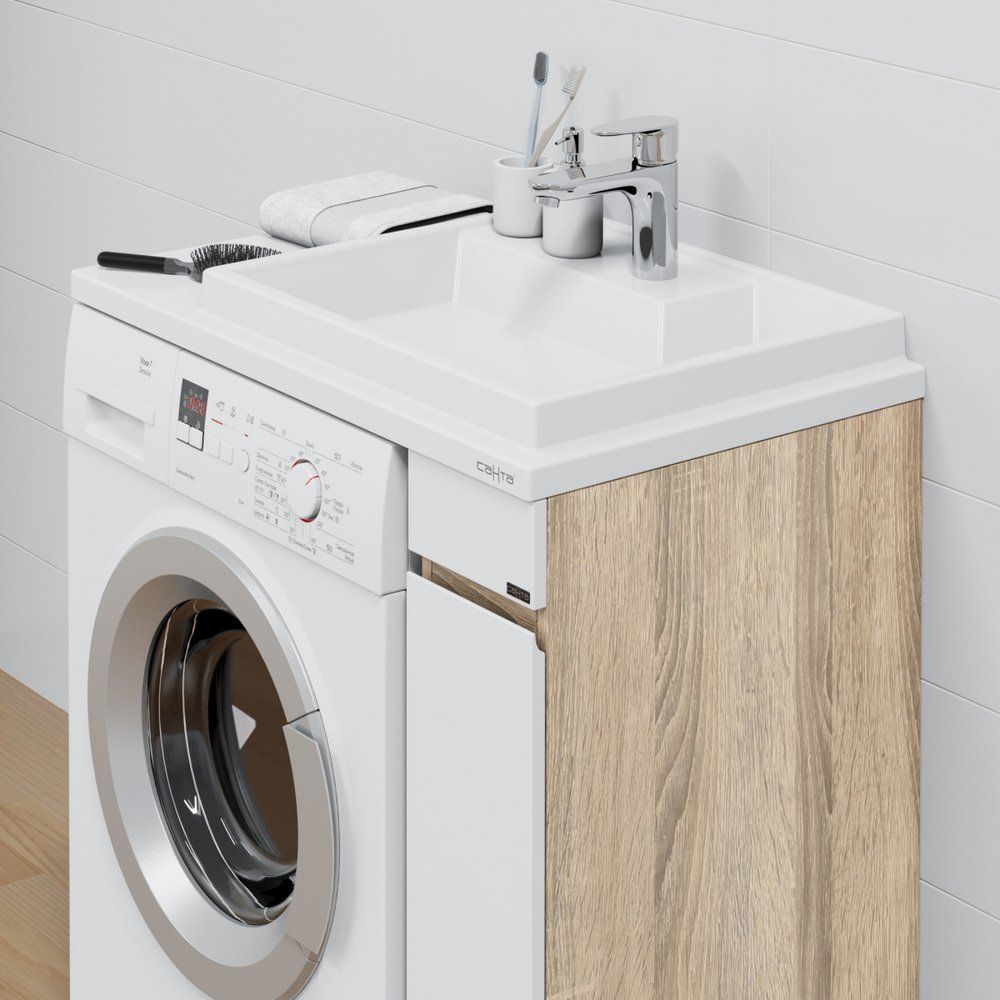 Раковина "СаНта Юпитер 80 R" размером 80x50 см из искусственного мрамора подвешивается над стиральной машиной, имеет готовое отверстие под смеситель диаметром 3.2 см. Кронштейны и донный клапан приобретаются отдельно. Гарантия на изделие 1 год, произведено в России.