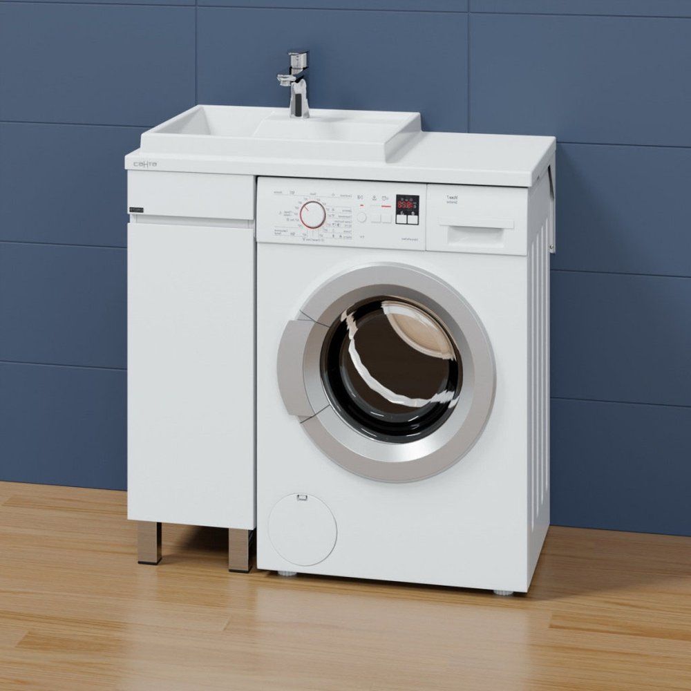 Раковина СаНта Юпитер 90 L выполнена из искусственного мрамора и подвешивается над стиральной машиной, ее габариты - 90x50 см. Она имеет одно подготовленное отверстие для смесителя, однако донный клапан потребуется приобрести отдельно.