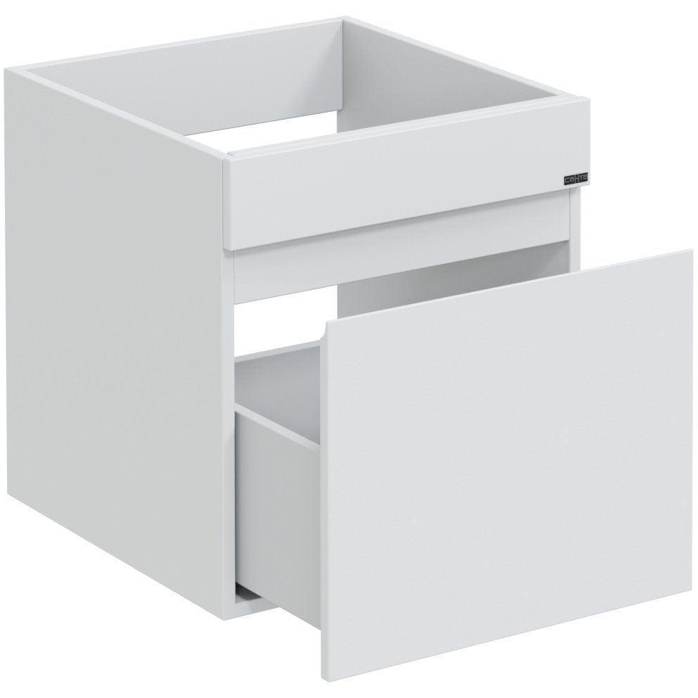 Тумба СанТа Марс 48 подвесная оптимально подходит для установки над стиральной машиной. Ее размеры составляют 47,4 см в ширину, 49 см в глубину и 50 см в высоту. Корпус выполнен из ЛДСП с эмалевым покрытием. Модель оснащена ящиками и механизмом доводчика.