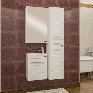 Тумба СаНта Омега Como 40 имеет размеры 39x21,2x54 см и выполнена из ламинированного ЛДСП с фасадом из МДФ, покрытого пленкой. Встроенные доводчики обеспечивают плавное закрывание дверей, внутри которых расположены несъемные полки для хранения. Хромированная фурнитура подчеркивает современность дизайна. В комплект входит фарфоровая раковина Cersanit Como 40 размером 40x22 см, оснащенная встроенным сливом-переливом, с одним готовым отверстием под смеситель. Зеркало-шкаф СаНта Стандарт 45 фацет размером 45x15x73 см дополнен подвесами и доводчиками для бесшумного открывания.