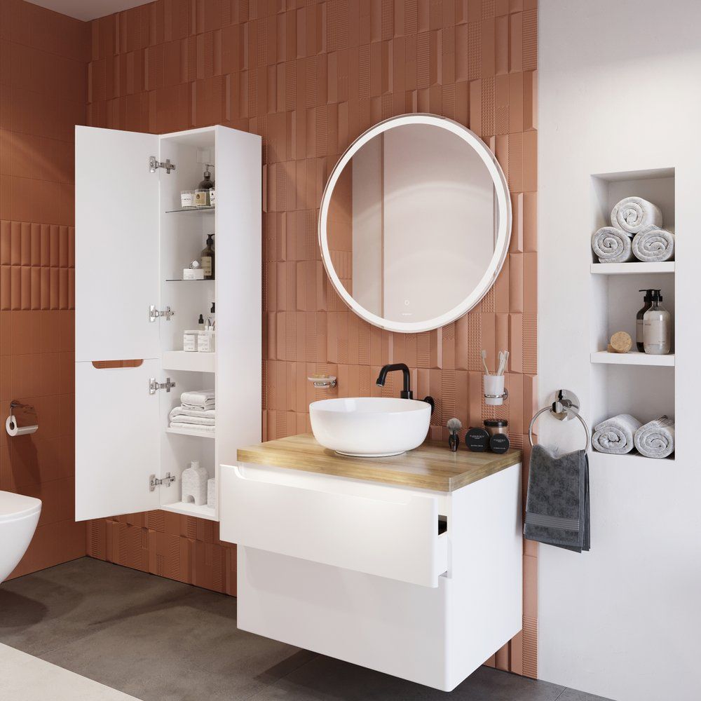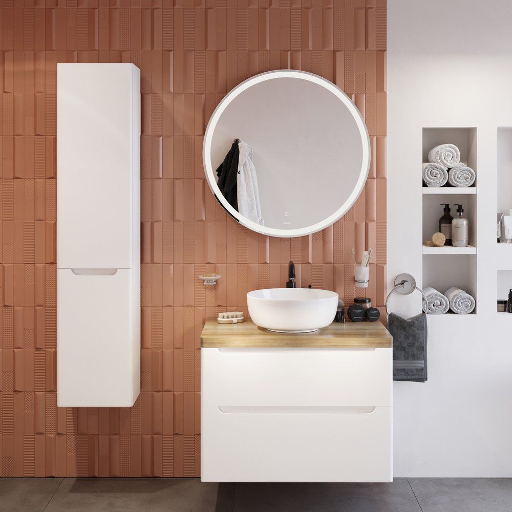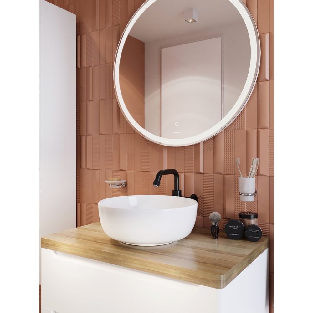 Зеркало STWORKI Мальмё 77 с пластиковой округлой рамой и встроенной подсветкой будет не только функциональным элементом, но и стильным акцентом. Его размеры — 77x2,8x77 см, оно имеет сенсорный выключатель для удобства использования.
