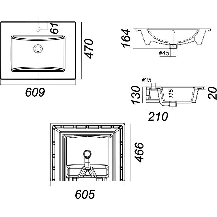 Мебельная раковина STWORKI Quadro 60 имеет габариты 60,9x47 см и выполнена из высококачественного фарфора. Она поддерживает слив-перелив и стандартный диаметр сифонов 3,2 см. Раковина оснащена одним отверстием под смеситель.
