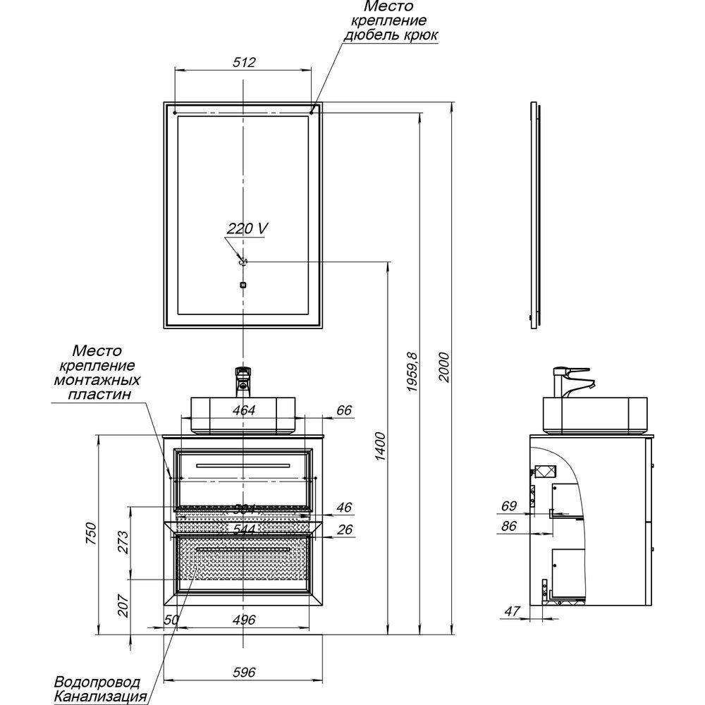 - Установка раковины требует отверстия в столешнице, которая поставляется без отверстий под смеситель.