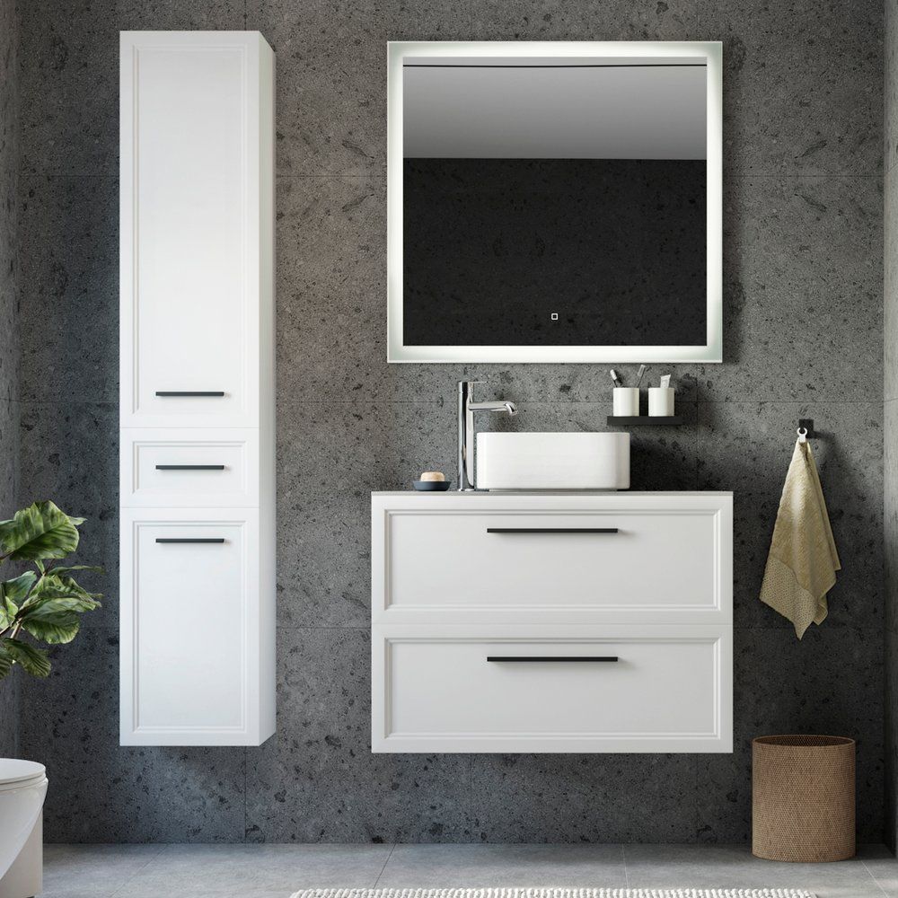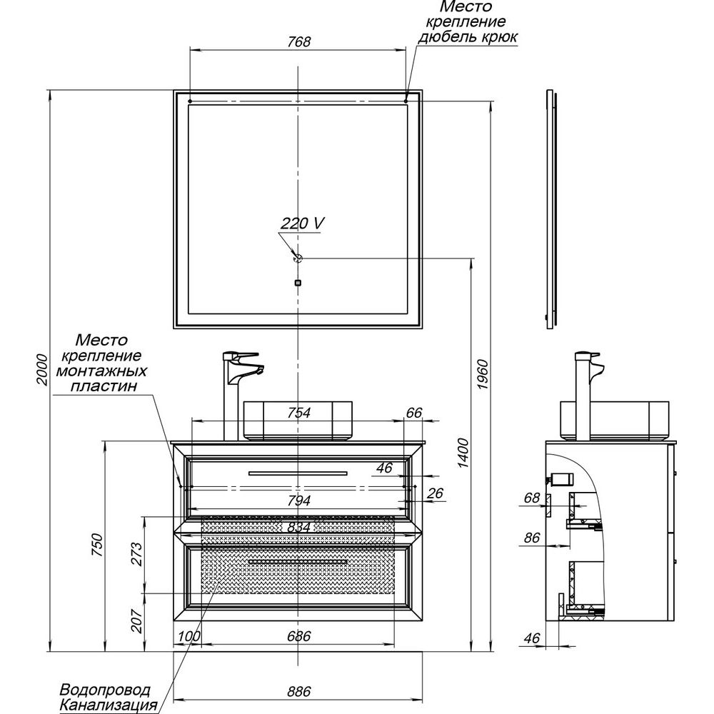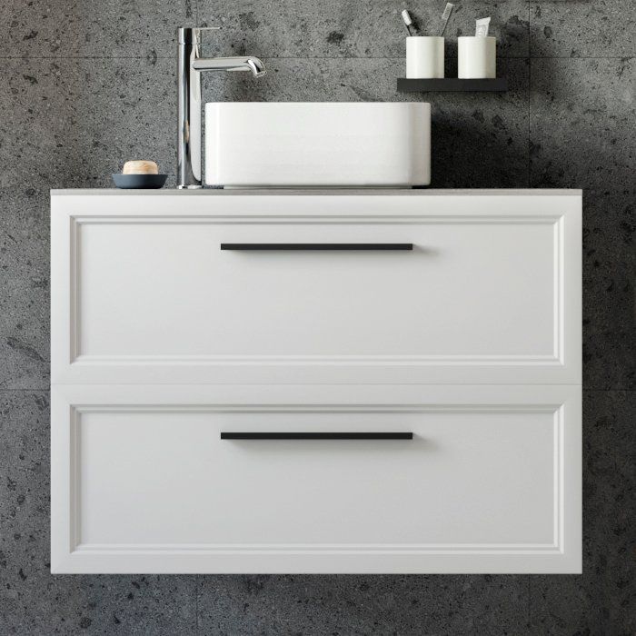 Для полного комплекта необходимо дополнительно приобрести шкаф-пенал. При выборе сифона следует учитывать специфику конструкции тумбы с раковиной и подбирать его индивидуально. Столешница оснащена отверстием для установки смесителя, что добавляет удобства в установке.