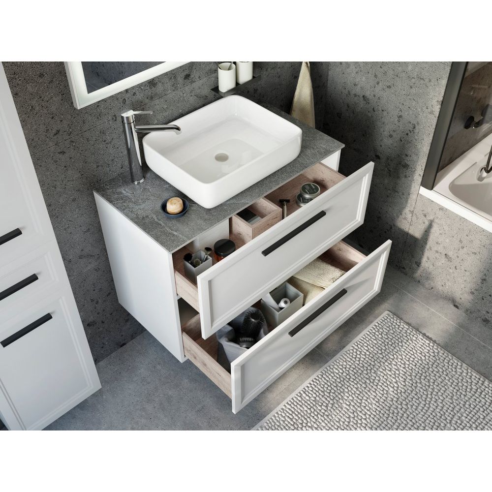 Мебель для ванной комнаты STWORKI Эстерсунд 90 – это сочетание элегантного дизайна и функциональности. Белая матовая поверхность в сочетании с серой столешницей из керамогранита подчеркнет стиль любой ванной комнаты. Бренд STWORKI разработал эту коллекцию с учётом удобства использования и долговечности, чтобы покупатели могли наслаждаться комфортом каждый день. Установленное отверстие под смеситель в столешнице и раковина из фарфора создают завершенный и практичный внешний вид. Эта мебель несомненно станет центром вашего интерьера, создавая атмосферу уюта и современной эстетики.