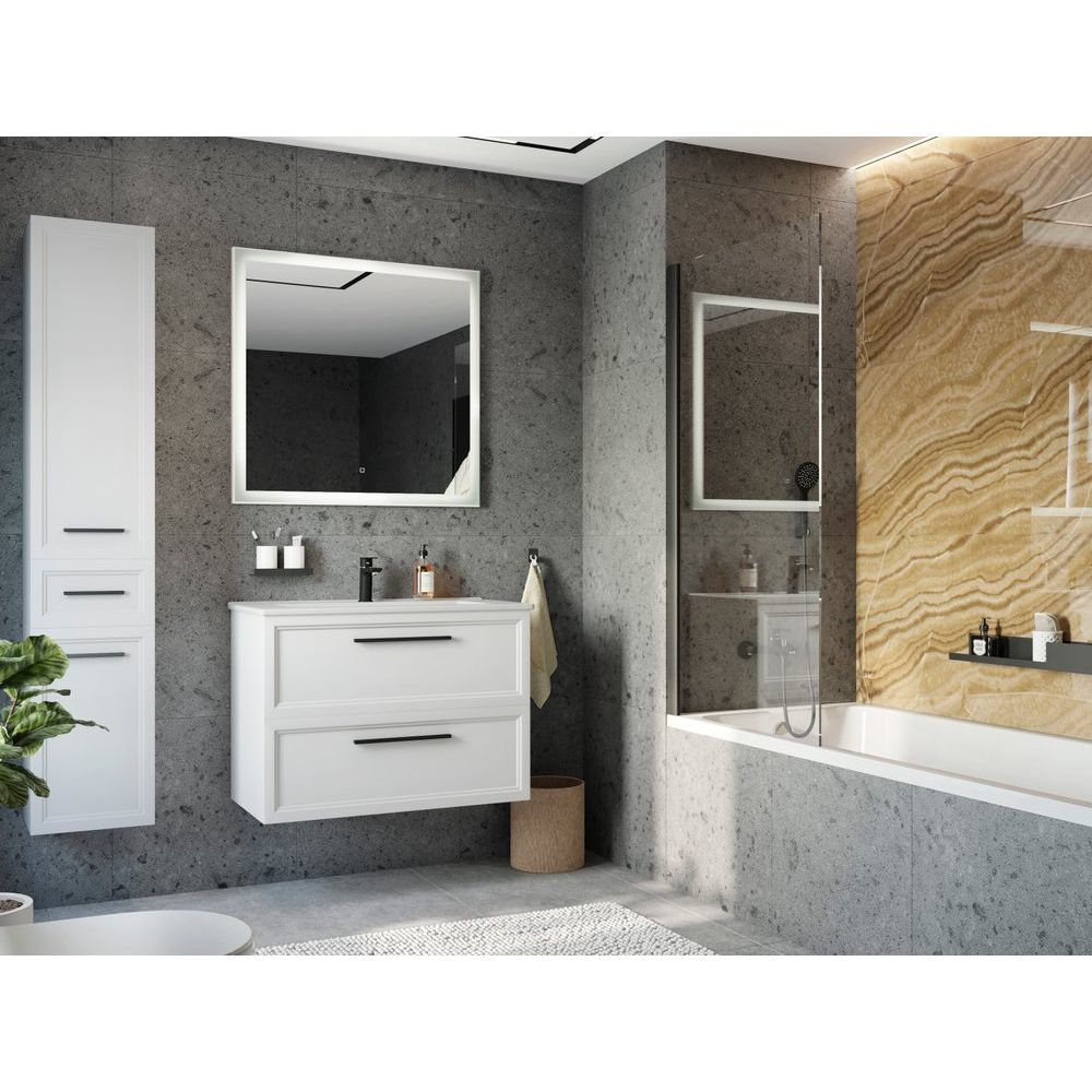 - Современные технологии: зеркало с подсветкой и удобным сенсорным управлением.