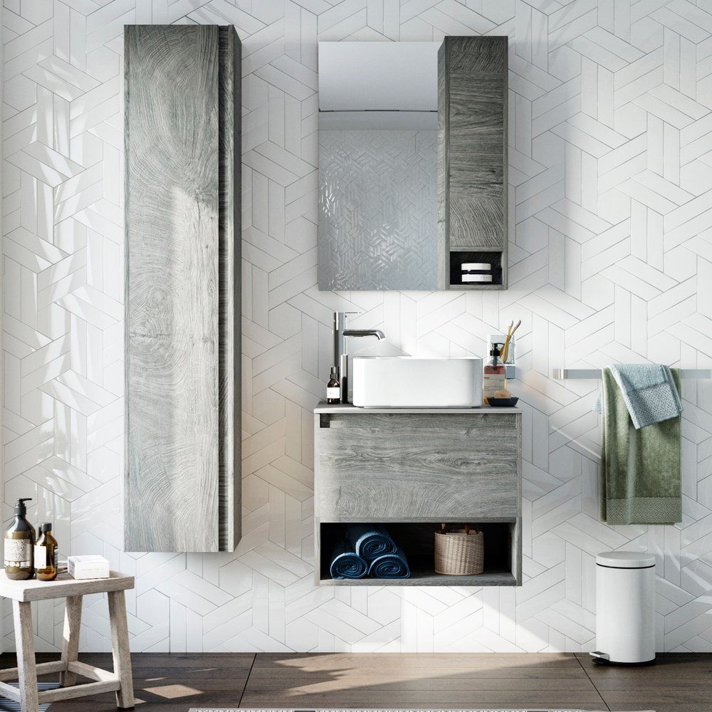 Подвесной гарнитур для ванной комнаты STWORKI «Карлстад 60» воплощает современную эстетику и функциональность, сочетая трендовый декор «дуб рошелье» с эргономичным дизайном. Комплект включает в себя тумбу с раковиной и зеркальный шкаф с удобной системой Push-to-Open. Дополнительно можно приобрести компактный пенал, который подойдет для любой ванной комнаты благодаря универсальной ориентации. Ящики тумбы оснащены продуманными немецкими направляющими Hettich Quadro Silent System, обеспечивающими мягкое и бесшумное закрывание.