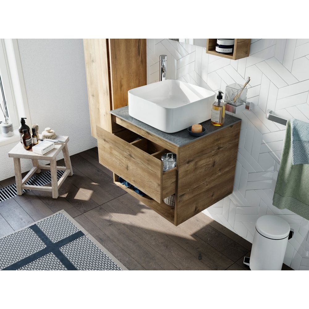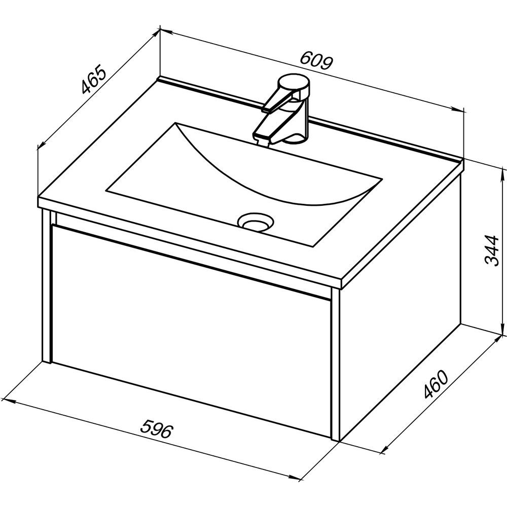 - Столешница STWORKI 60: Размеры 60,6x46,5x1,1 см, серый керамогранит, одно готовое отверстие под смеситель.