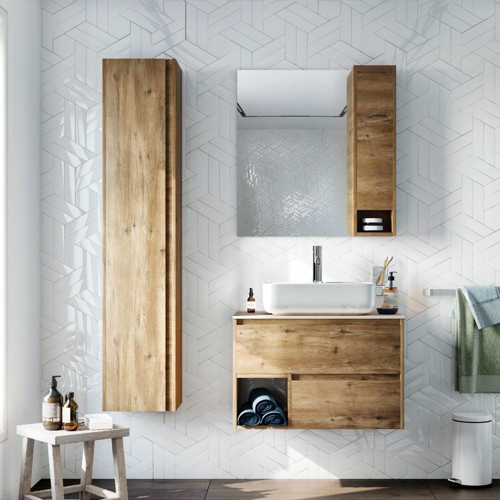 Представляем вашему вниманию гарнитур для ванной комнаты STWORKI из коллекции «Карлстад». Этот комплект гармонично сочетает в себе стиль лофт и практичность, подчеркивается роскошной отделкой «дуб рустикальный» и универсальностью. Он станет идеальным решением как для средних, так и для компактных ванных комнат. Продуманный до мелочей дизайн с открытыми нишами и технологией Push-to-Open придает вашему пространству лаконичный, современный вид, не загромождая его выступающими элементами.