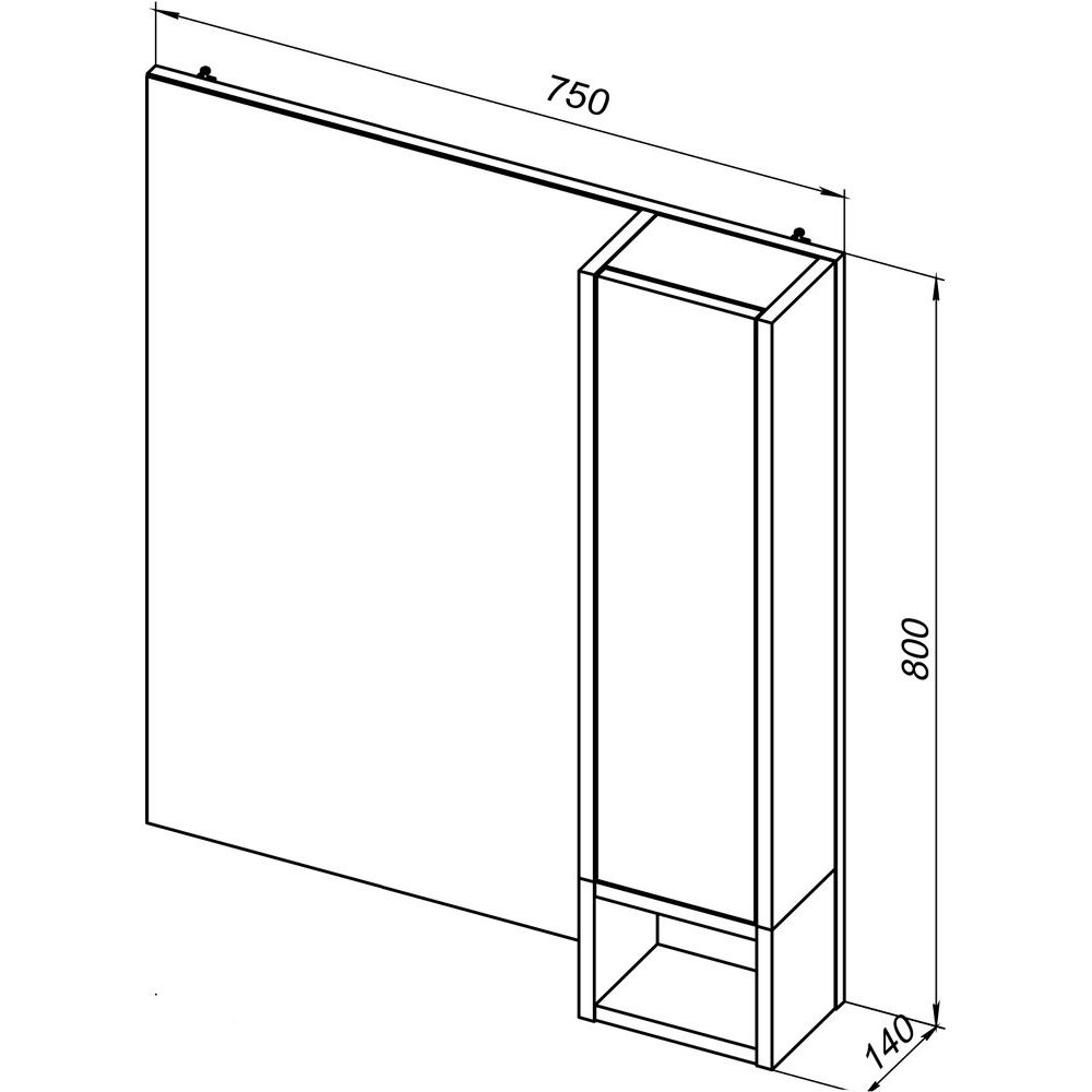 Зеркало STWORKI Карлстад R 75 с размерами 75x14x80 см, имеет корпус из ДСП без подсветки, снабжено подвесами для легкой установки.