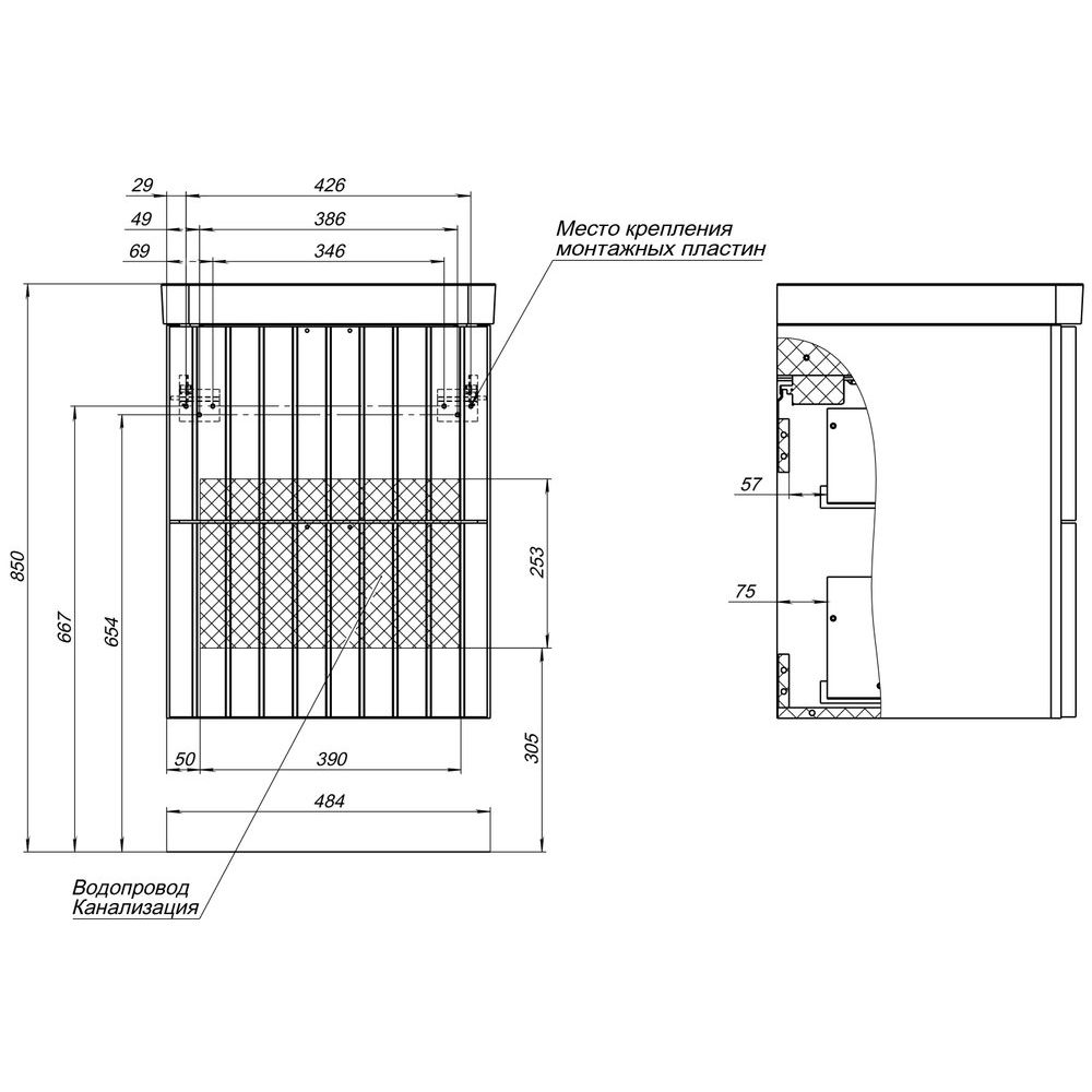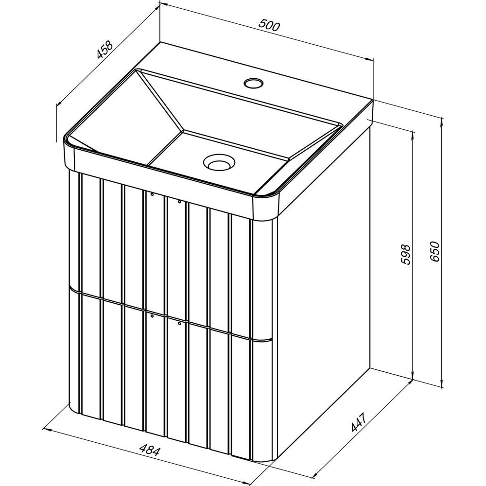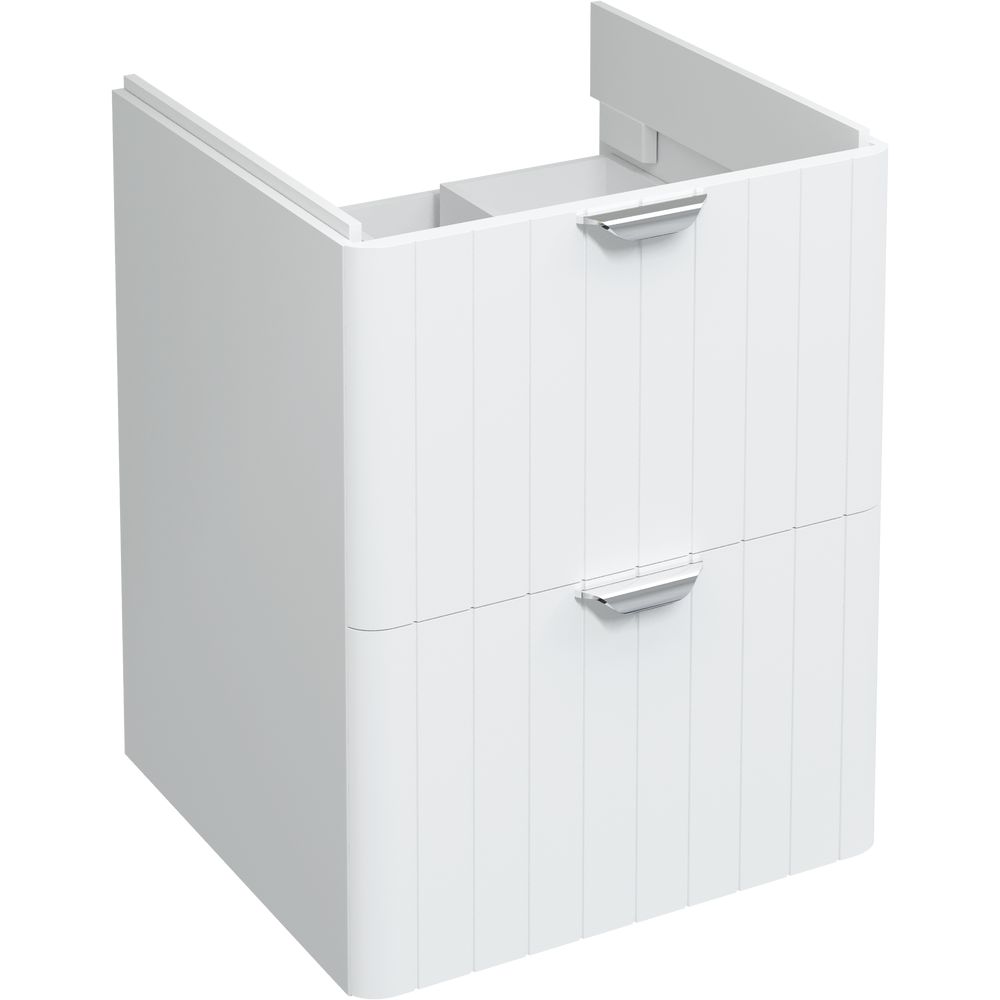 Тумба размера 48,4х44,7х59,8 см подвешивается на стену, что облегчает уборку и экономит пространство. Изготовлена из МДФ с матовым покрытием, дополнена ящиками с хромированной фурнитурой. Оснащена механизмом доводчика, что обеспечивает плавное закрывание.
