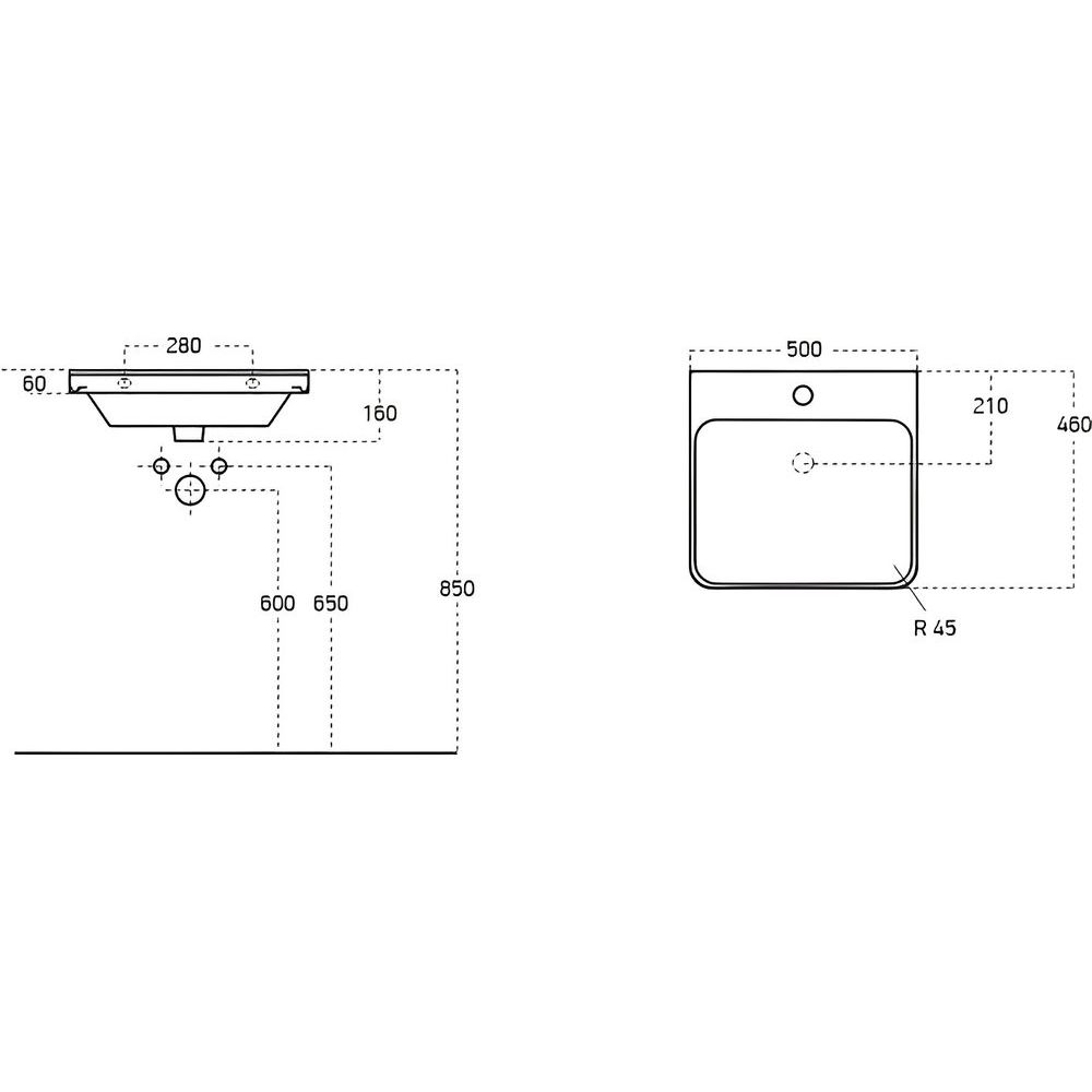 Раковина выполнена из фаянса размером 50х46 см, имеет встроенный слив-перелив и одно отверстие под смеситель. Обратите внимание, что донный клапан приобретается отдельно. Гарантия на раковину - 10 лет.