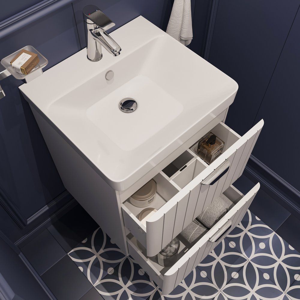 Мебель для ванной комнаты STWORKI Ларвик 50 в белом матовом исполнении — это идеальное сочетание элегантности и функциональности. Гарнитур, разработанный специально для современных ванных комнат, отличается превосходным качеством и эргономичностью. Мебель создается из экологически чистых материалов, что гарантирует безопасность и долговечность эксплуатации.