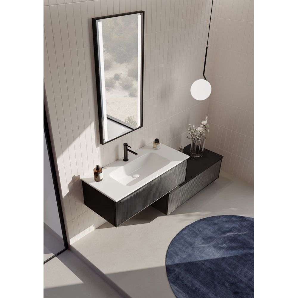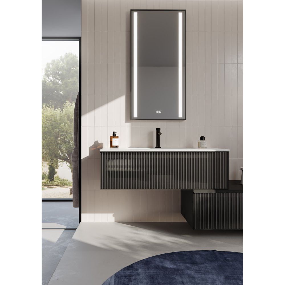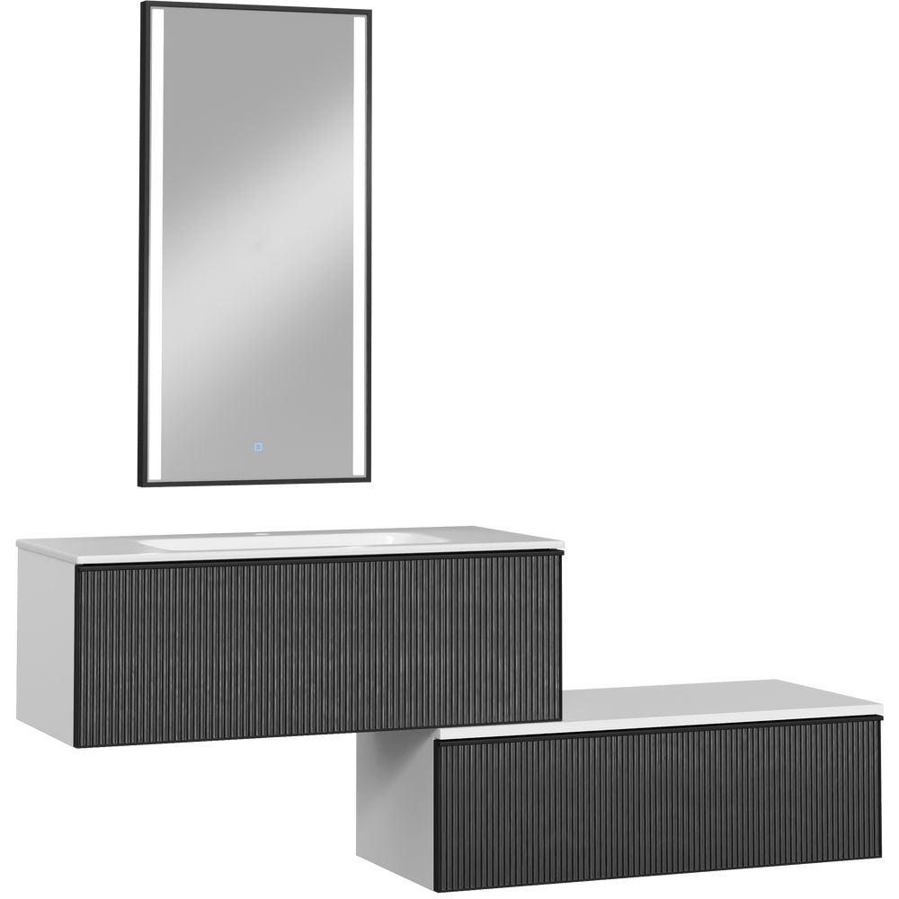 Тумбы для комплекта STWORKI Левангер 100 имеют габариты 101x46x36 см и выполнены из МДФ с эмалевым покрытием. Фасады тумб из металла со стеклянным покрытием дополнены встроенной подсветкой для удобства использования. Зеркало с подсветкой и сенсорным выключателем размерами 50x4x100 см готово добавить дизайнерское завершение вашему интерьеру. Белоснежная фарфоровая раковина размерами 101x46,5 см оснащена одним отверстием под смеситель и комплектуется сливом-переливом.