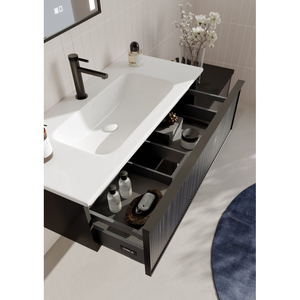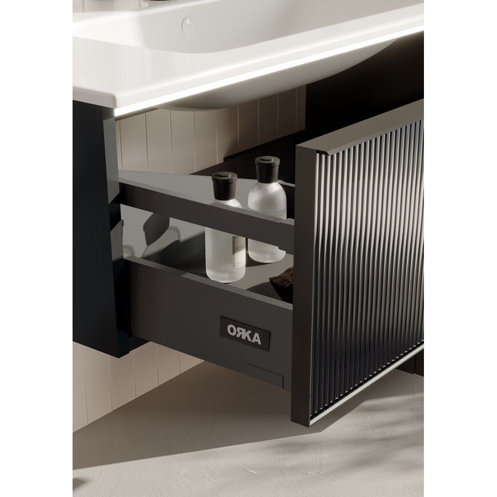 - Функциональность: выдвижные ящики с механизмами доводчика и встроенный слив-перелив.