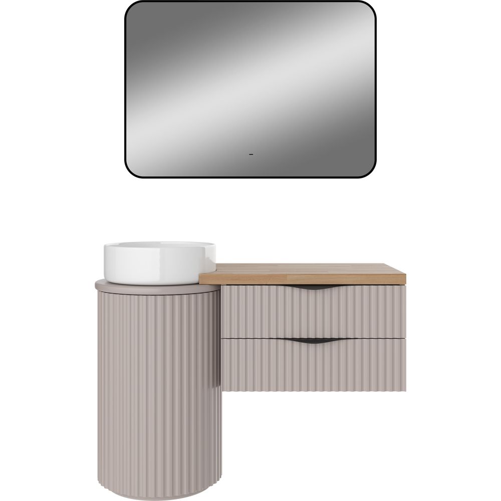 - Удобные в использовании детали - ящики/дверки и регулируемая подсветка зеркала.