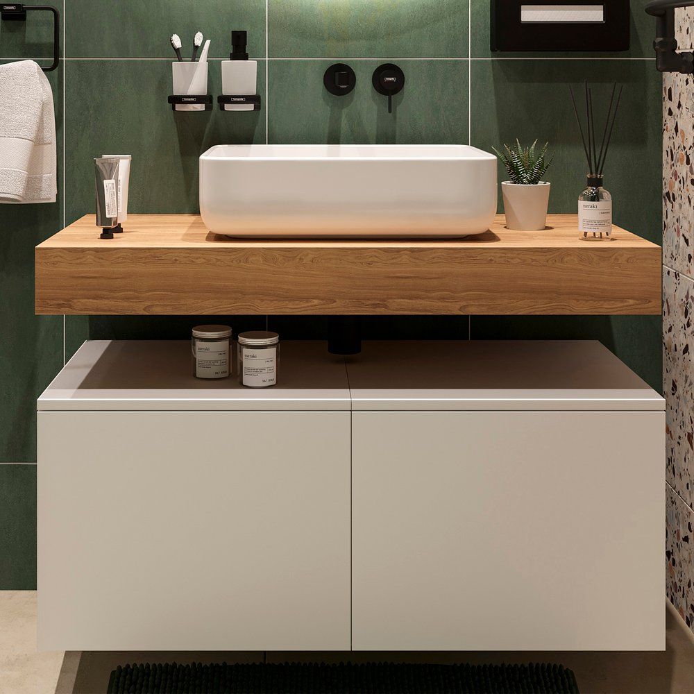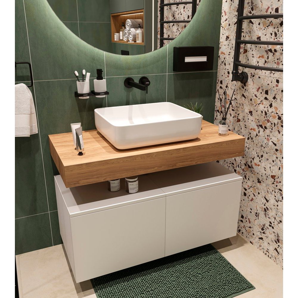 Откройте для себя гармонию дизайна и функциональности с гарнитуром для ванной комнаты STWORKI из коллекции «Ольборг». Этот тщательно продуманный комплект идеально подходит для тех, кто стремится к максимальному удобству и стилю. Гарнитур включает две подвесные тумбы с нажимными механизмами открывания, просторную столешницу и элегантную фарфоровую раковину STWORKI Soul 1. Подвесные тумбы с выдвижными ящиками и встроенными органайзерами обеспечат порядок в ваших вещах, а изысканное зеркало STWORKI «Мальмё 100» с LED-подсветкой создаст комфортное освещение.