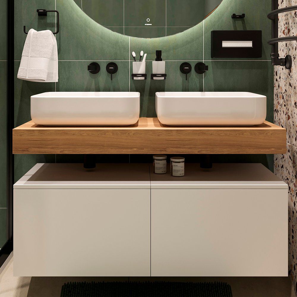 Мебель для ванной комнаты STWORKI Ольборг 120 станет изысканным дополнением для вашей ванной комнаты. Гармония светлого дерева и чистых белых раковин подчеркивает продуманность и элегантность коллекции. Комплект включает две тумбы, две раковины и столешницу без отверстий, что позволяет вам адаптировать изделие под свои потребности и стиль. Гарнитур выполнен из высококачественных материалов, обещая долговечность и комфорт в использовании.