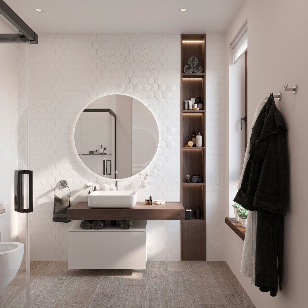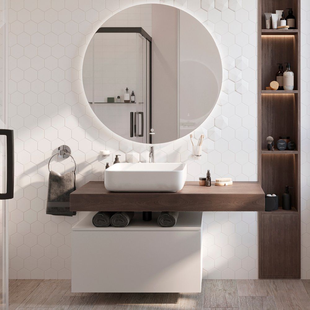 - Зеркальное полотно от ведущего европейского производителя AGC с регулируемой подсветкой добавляет стиль и функциональность.