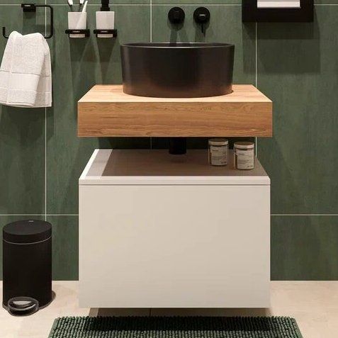 Обратите внимание, что столешница не имеет готовых или намеченных отверстий под смеситель. Это значит, что вам нужно будет подумать о выборе специализированного сифона в соответствии с конструкцией тумбы и раковиной. Эти моменты помогут вам создать максимально функциональное и эстетичное решение для вашей ванной комнаты.
