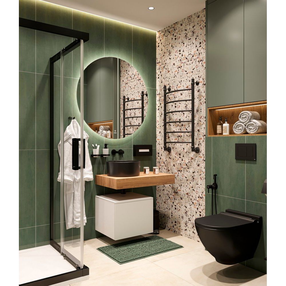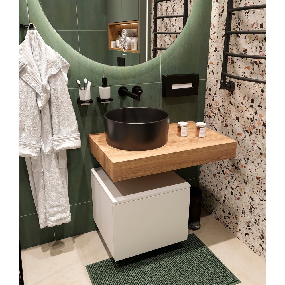 Мебель для ванной комнаты STWORKI «Ольборг 80» предлагает гармоничное сочетание элегантности и функциональности. Комплект, состоящий из столешницы в уютном оттенке «дуб французский», аккуратной подвесной тумбы и стильной черной раковины-чаши, подчеркнет индивидуальность вашего интерьера и создаст атмосферу современного комфорта. Внедренные технологии, такие как нажимной механизм открывания и сенсорное управление подсветкой круглого зеркала STWORKI «Мальмё 100», делают использование гарнитура максимальной комфортным.