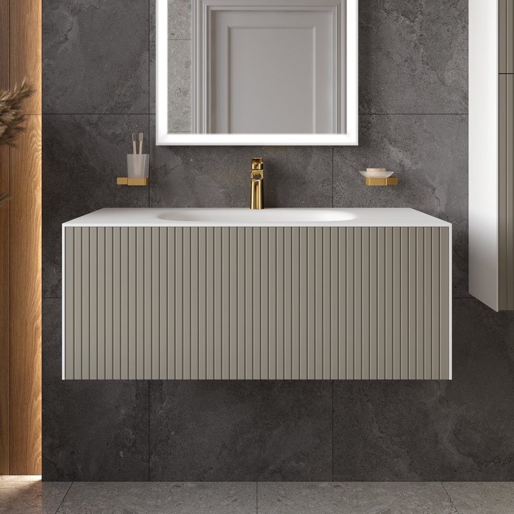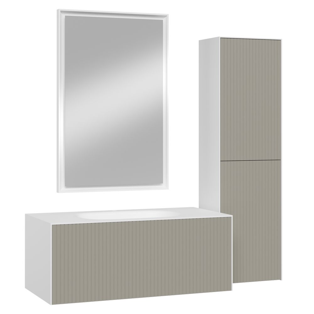 Мебель для ванной комнаты STWORKI Олланд 100 в элегантном бежево-сером исполнении – это гармоничное сочетание современного дизайна и функциональности. Каждый элемент гарнитура разработан для максимального удобства и комфорта в использовании, создавая идеальную атмосферу спокойствия и уюта в вашем санузле.