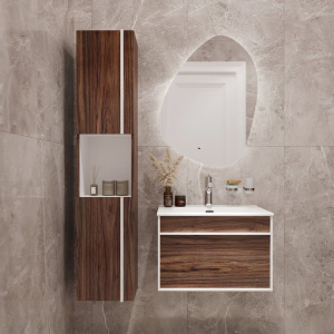 Мебель для ванной комнаты STWORKI из коллекции Вестервик прекрасно сочетает в себе современный дизайн и функциональность, предлагая рациональные решения для вашего интерьера. Гарнитур "Вестервик 60" в цвете орех каньон привнесет в ваш дом эстетику с нотками скандинавского минимализма, делая вашу ванную комнату уютнее и функциональнее. Комбинация подвесной тумбы, мебели из долговечных материалов, эстетичное зеркало с подсветкой и компактная раковина обеспечат максимальный комфорт и удобство использования.