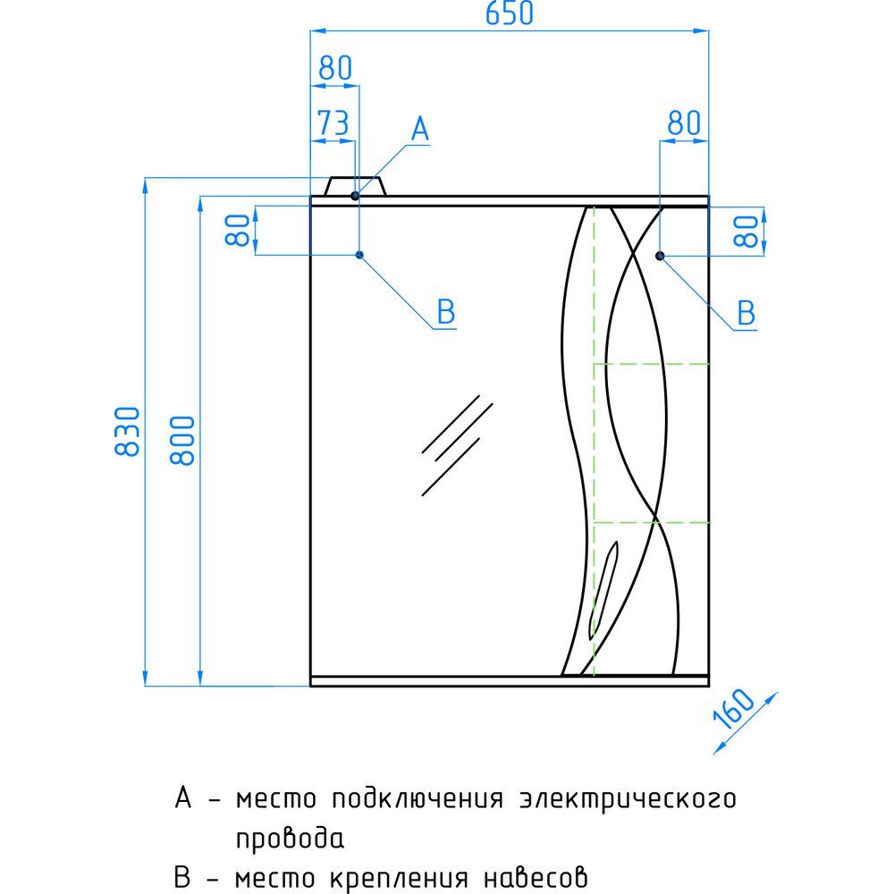 - Зеркало: размеры 65x16x83 см с ДСП корпусом, механическим выключателем и встроенной розеткой.