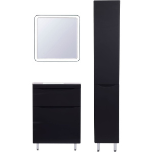 Тумба с размерами 59,1x34,6x83 см выполнена из высококачественного МДФ с пленочным покрытием, устанавливается на пол и снабжена опорными ножками. Благодаря механизму доводчика, открывание и закрывание ящиков происходит максимально плавно. Мебельная раковина 60x35 см изготовлена из искусственного мрамора и не предусматривает установку донного клапана, но включает декоративную накладку на слив и готовое отверстие под смеситель. Зеркало из ДСП пленочного покрытия размером 60x2,7x60 см оснащено встроенной подсветкой и часами, управляемыми сенсорным касанием. Гарантия на комплектующие: 5 лет на тумбу и 1 год на раковину и зеркало. Производство в России.