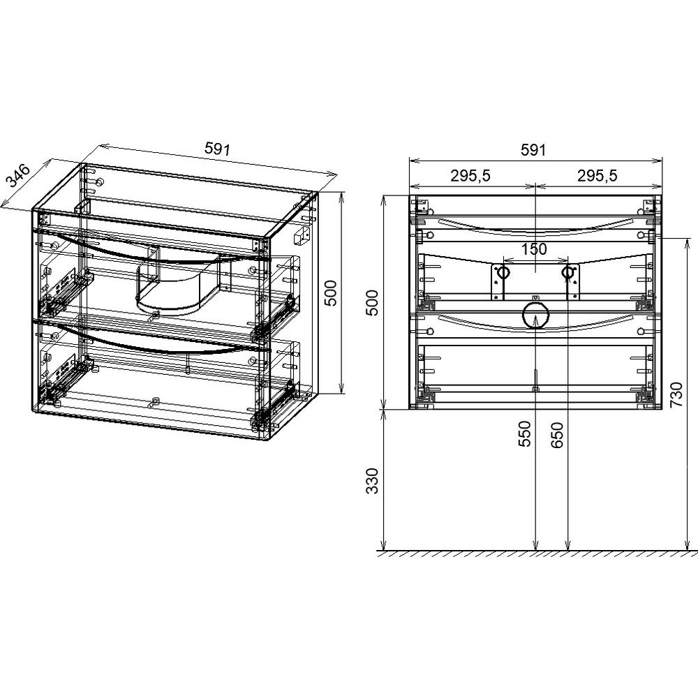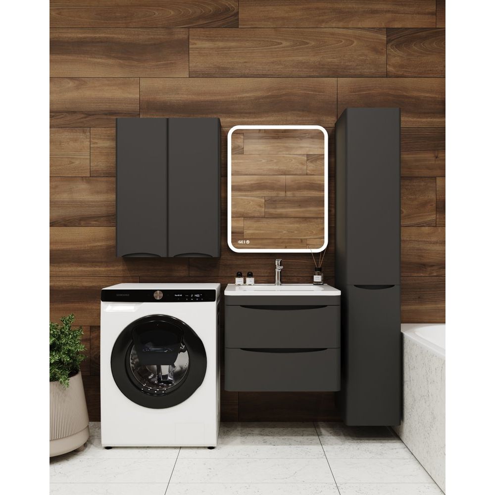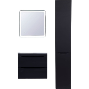 Тумба в комплекте имеет размеры 59,1x34,6x50 см и выполнена из МДФ с пленочным покрытием. Она оснащена механизмом доводчика, обеспечивающим комфортное и бесшумное закрывание ящиков. Мебельная раковина из искусственного мрамора, размером 60x35 см, имеет декоративную накладку на слив и готовое отверстие под смеситель. В комплект также входит зеркало размером 60x2,7x60 см, оснащенное подсветкой и сенсорным выключателем, позволяющим легко управлять освещением простым касанием. Для удобства пользователей зеркало оснащено часами.