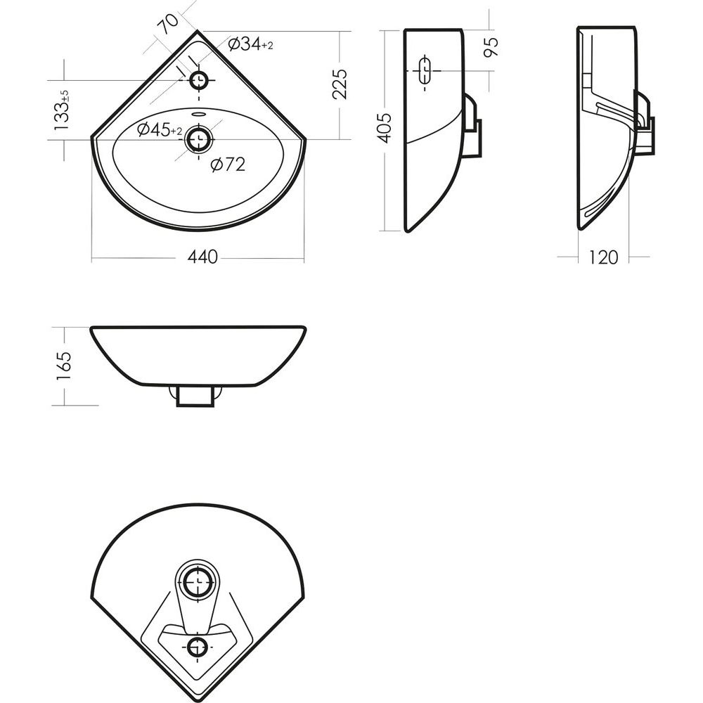 Раковина: материал — фаянс, размер 36x36 см, подвесная установка, оснащена встроенным сливом-переливом, с одним отверстием для смесителя. Донный клапан приобретается отдельно. Гарантия 1 год.