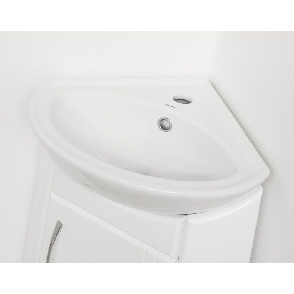 Угловой гарнитур для ванной комнаты Style Line «Эко Стандарт Веер» — идеальное решение для малогабаритных пространств. Его компактные размеры (ширина всего 36 см) позволяют гармонично вписаться в любой современный интерьер. Используемый материал — высококачественная ДСП, покрытая плёнкой для защиты от влаги, а глянцевая поверхность облегчает уход — достаточно протереть её салфеткой. Тумба на полу обеспечивает хранение необходимых бытовых предметов, а белая фаянсовая раковина с глубокой чашей делает эксплуатацию максимально комфортной. Дополняет гарнитур подвесной шкафчик с зеркалом и полками.